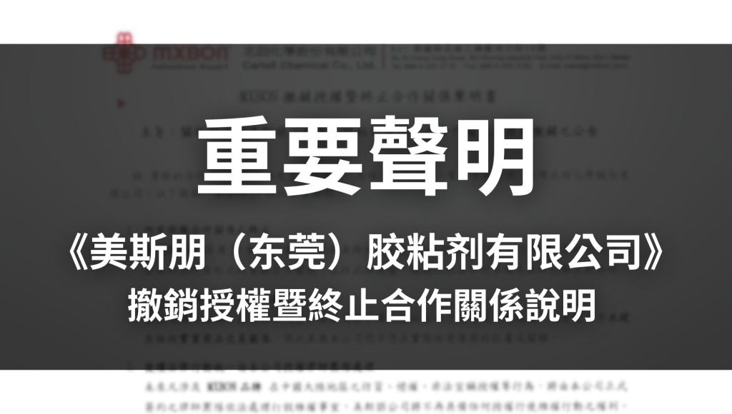 北回化學重要聲明 《美斯朋(东莞)胶粘剂有限公司》 撤銷授權暨終止合作關係說明